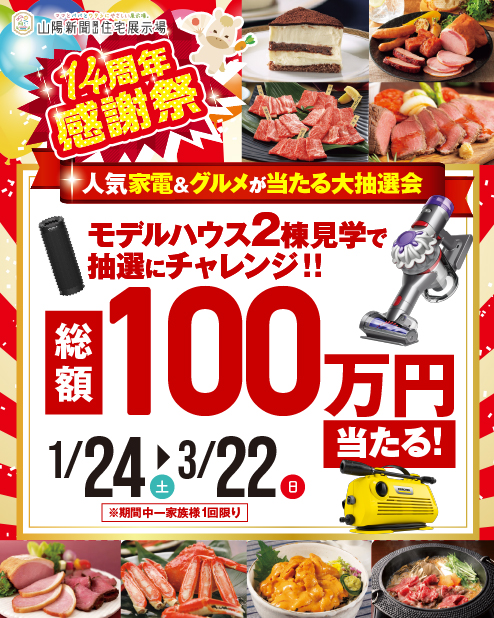 【✨㊗️14周年感謝祭🎊✨】人気家電&贅沢グルメが抽選で当たるモデルハウス2棟見学ラリー