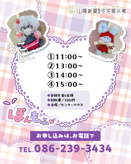 ワークショップで作った「ぽんもふさん」の映えフォトコーナーも登場します。