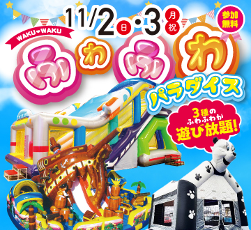係員の指示にご協力をお願いいたします。思いっきりジャンプ・ジャンプ!3種のふわふわで遊び放題!